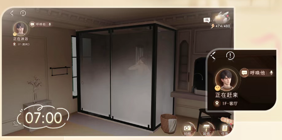 7、欣赏盆栽、落地窗互动:靠近盆栽/落地窗,会出现小点,点击就行。