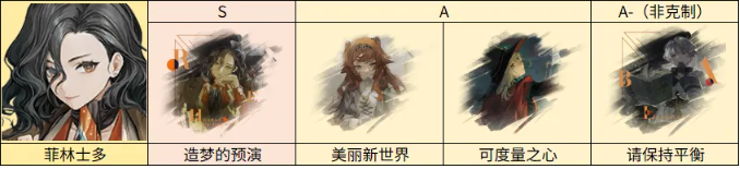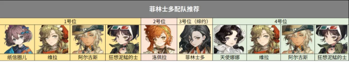 菲林士多与洛佩拉相性较好,洛佩拉能补充菲林士多缺乏的暴击率并提高仪式伤害;