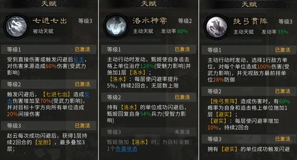 在甄姬和太史慈双重增益下,赵云可以获得高额的闪避率,实现闪避反击的战术循环。