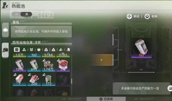 2、全设备关停减负:打开供电桩,利用其可控制范围内所有设备开启状态的功能,顺着点击关闭全部设备,减少电力消耗;随后调配产线专门生产电池,并将生产好的电池投放至热能池,为后续供电恢复储备能源。