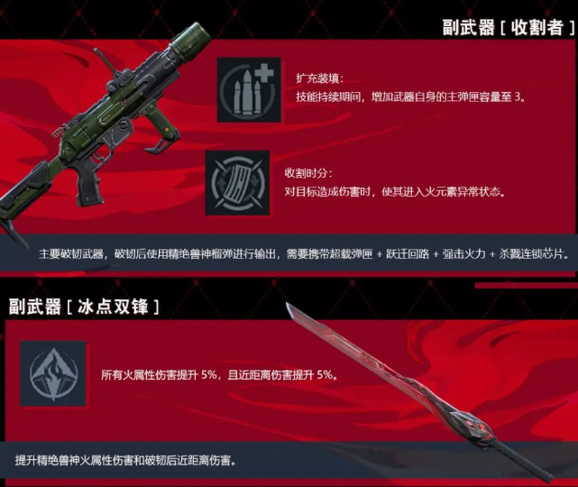 7、使用这些紫色副武器时的插件搭配,只需要保证二号位随时待命和三号位联动提升。请注意,在使用振弦时,因为榴弹不会暴击,所以尽量在开启技能后使用爆发模式连狙状态输出。