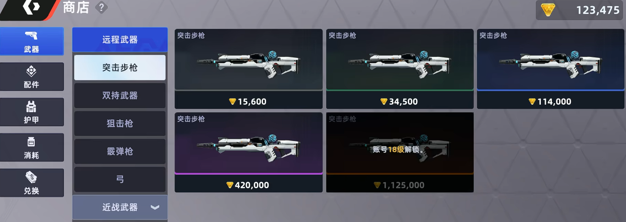 首先在商店购买最高级别的还是武器,武器方面有很多的种类,其中突击步枪是一个比较好上手的武器,基本上新手都是可以购买的,而商店里有很多不同品质的武器,这里直接推荐购买最后面的金色品质,因为这类武器的强度绝对是足够的,而且其他品质的武器完全可以在地图中拾取,没有必要购买。