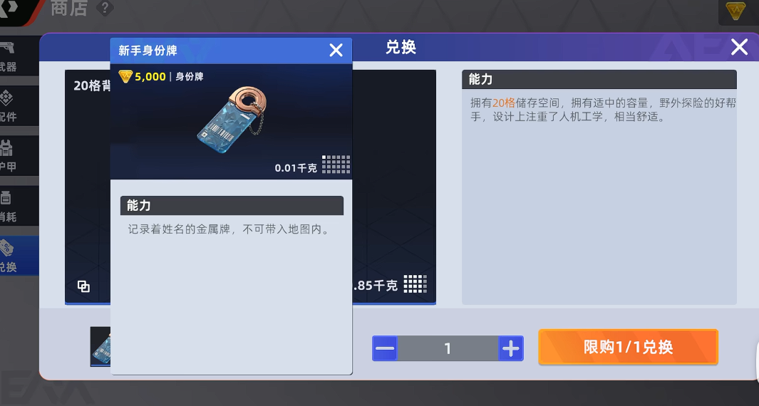还有一个就是身份牌,这个可以增加背包的容量,这对于野外探索太重要了,这样就可以多放置一些医疗道具以及武器,来提高自己的容错率。