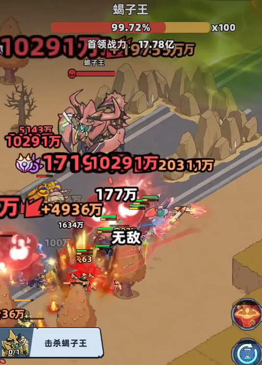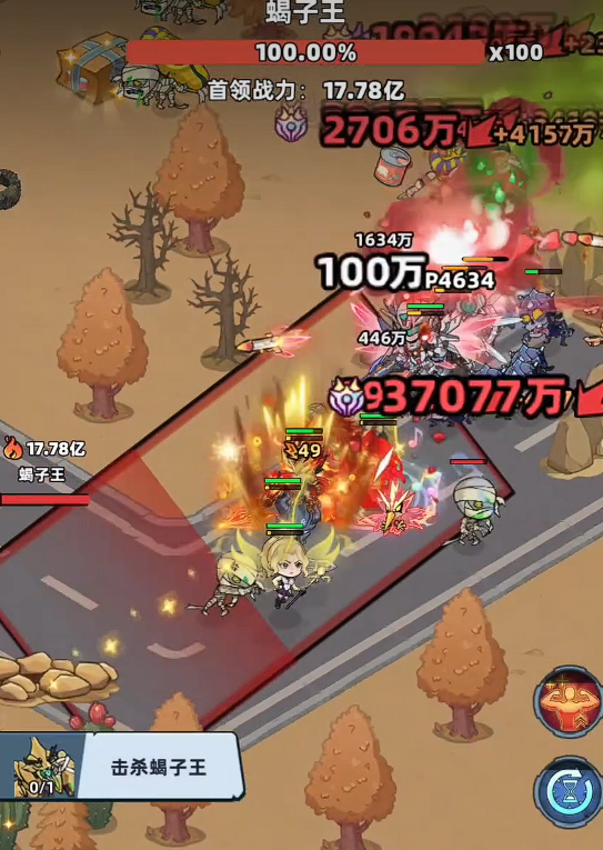 黑暗蝎子王在初期的攻击是比较缓慢的,在攻打的时候会出现红色攻击范围,这个范围内的敌人会被直接秒杀,不过该技能是比较好躲的,因为有明显的时间提示,只要玩家们看到提示立即撤离就能安全无伤,后续蝎子王就会停留在原地,这时候就是最好的输出时间。