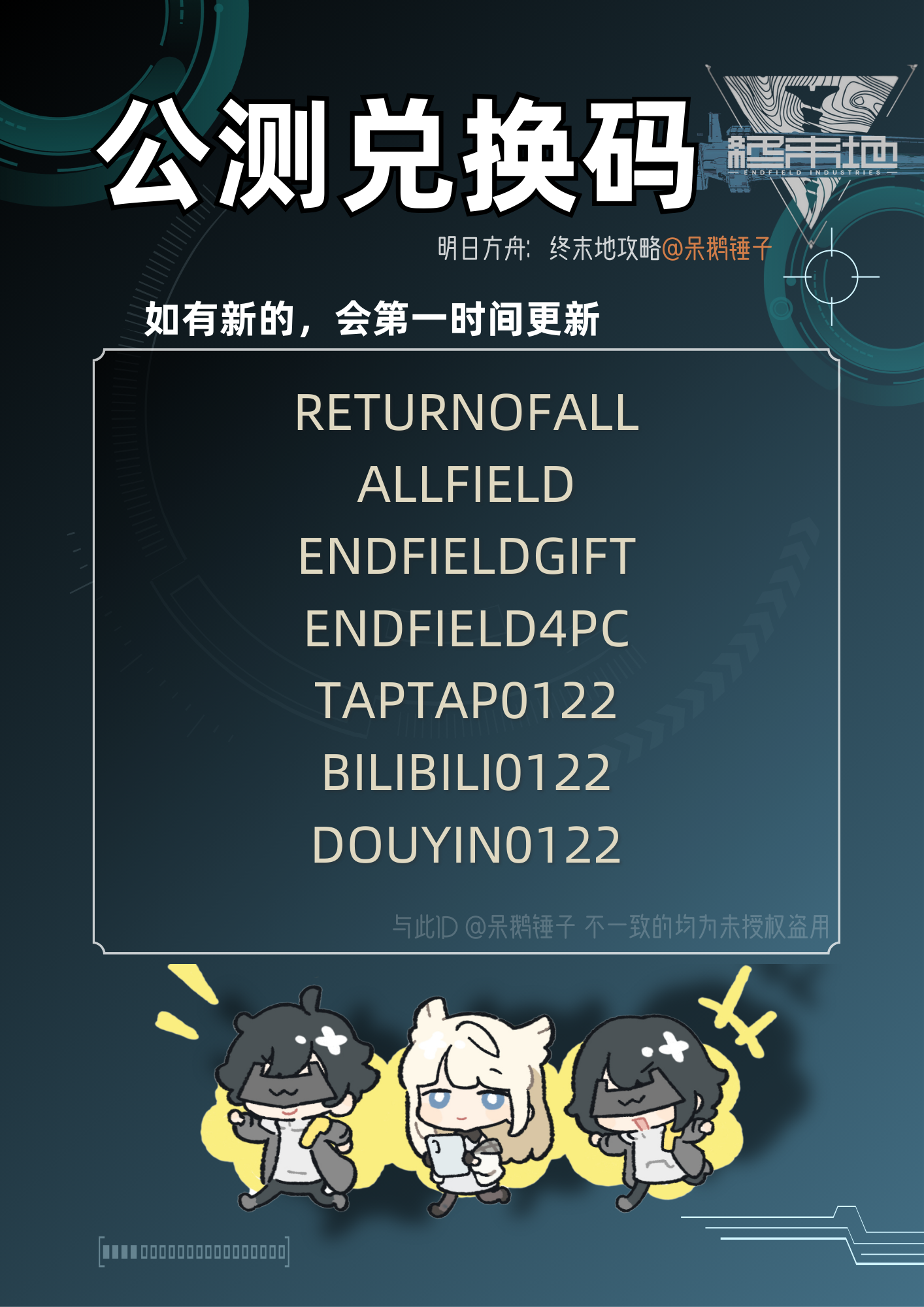 明日方舟:终末地【终末地】开服兑换码整理、换取方式如下: