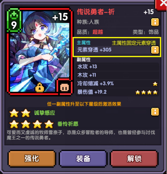 同时,本次江东二乔大服还有个额外福利:通关小秘境第40层可以获得一张主属性是元素穿透(副属必定4星,但不是毕业属性)的饰品卡【传说勇者-祈】,这张卡可以陪着我们度过整个开荒期【强烈推荐】。