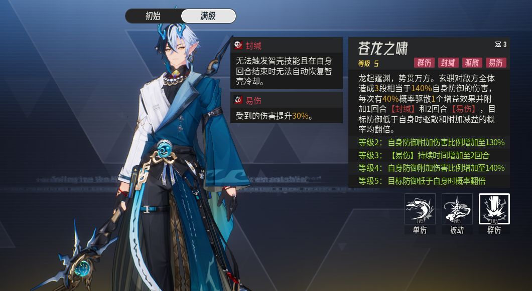 3:被动其余友方受攻击后-自拉条+群体拉条,且攻击防御低于自身目标时,无视60%防御。