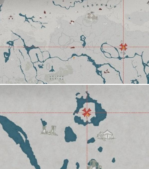 波杜帝葛营地位于红色沙漠区域的塔舒卡尔普东南方向,靠近地图边缘的位置。