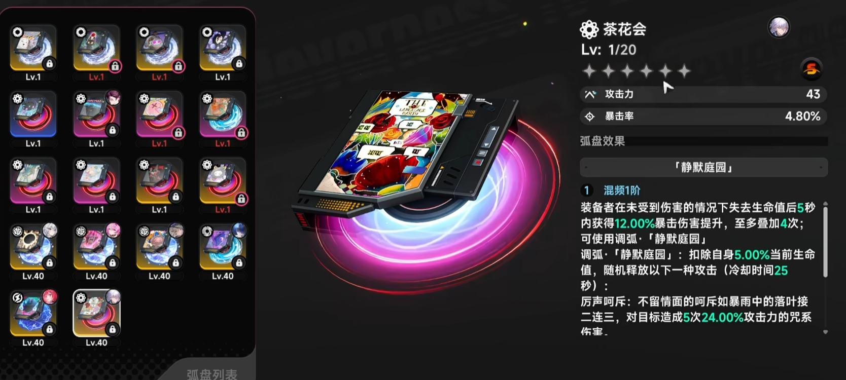 茶花会弧盘定位为S级机动向专属装备,专为强调位移、闪避与节奏把控的角色打造。其核心机制将“规避行为”直接转化为可观的暴击伤害增幅:装备后,角色在未受击状态下生命值将缓慢下降;与此同时,每成功规避一次攻击或完成一次精准走位,即可触发一层增益效果,持续5秒,提供12%暴击伤害加成,最多叠加4层。这意味着,在连续无伤操作下,暴击伤害提升可稳定达到48%。该设计显著强化了夜莺、雷欧等依赖高频闪避衔接输出的职业强度,使单兵突入、瞬杀精英目标成为可行战术路径,是高操作门槛与高回报收益的典型代表。